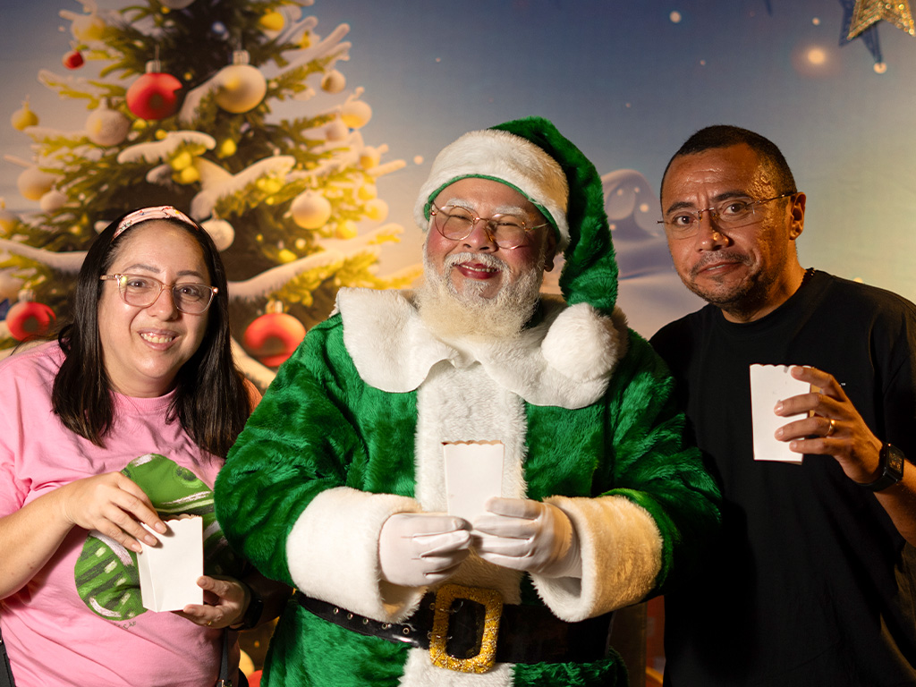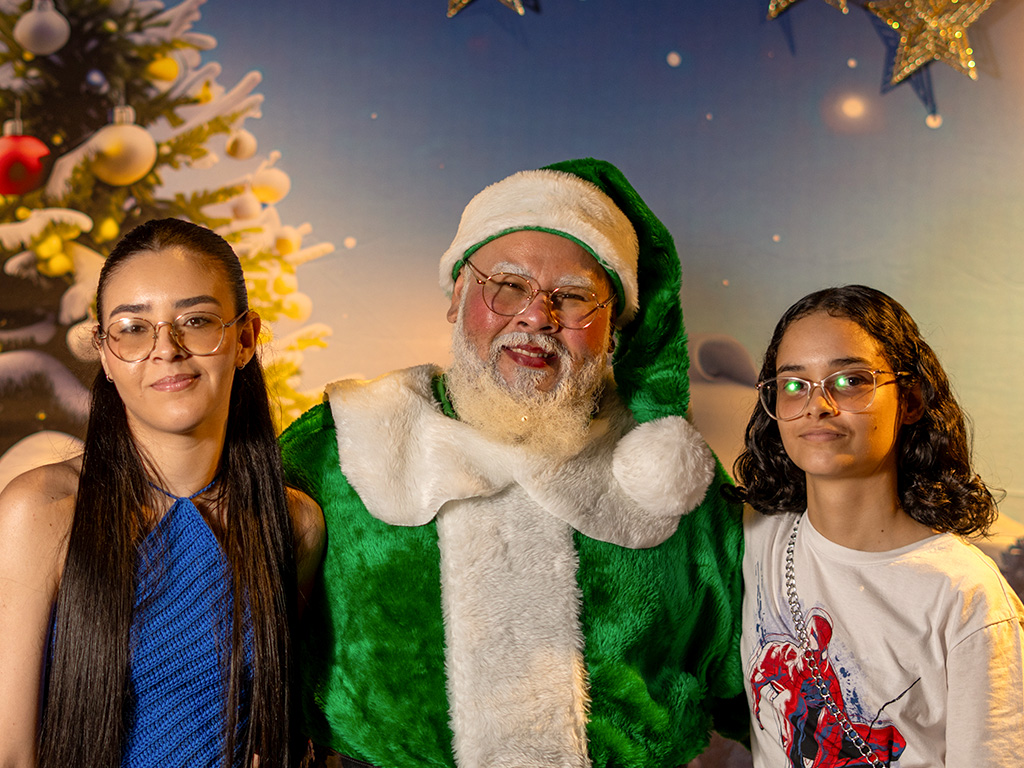 O Papai Noel foi um dos principais destaques da programação, interagindo com as crianças, participando de sessões de fotos, distribuindo lanches e conduzindo gincanas que animaram as famílias presentes.