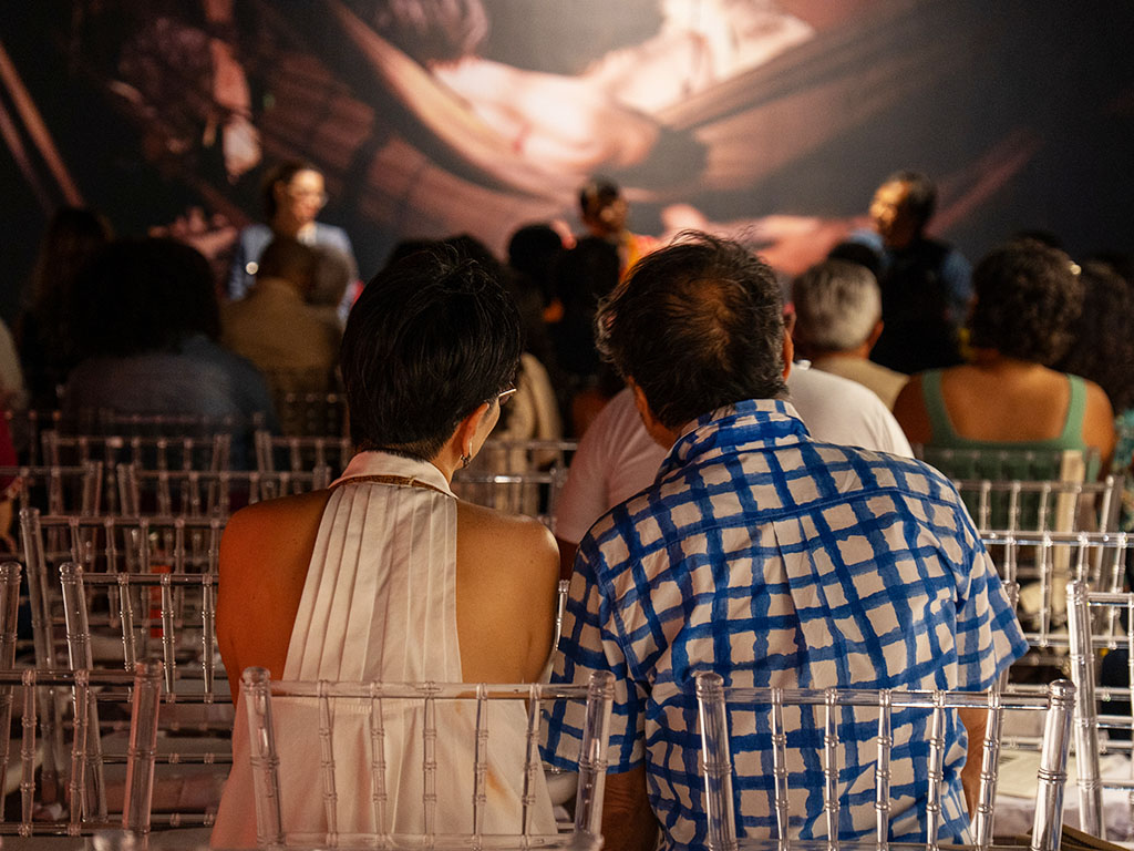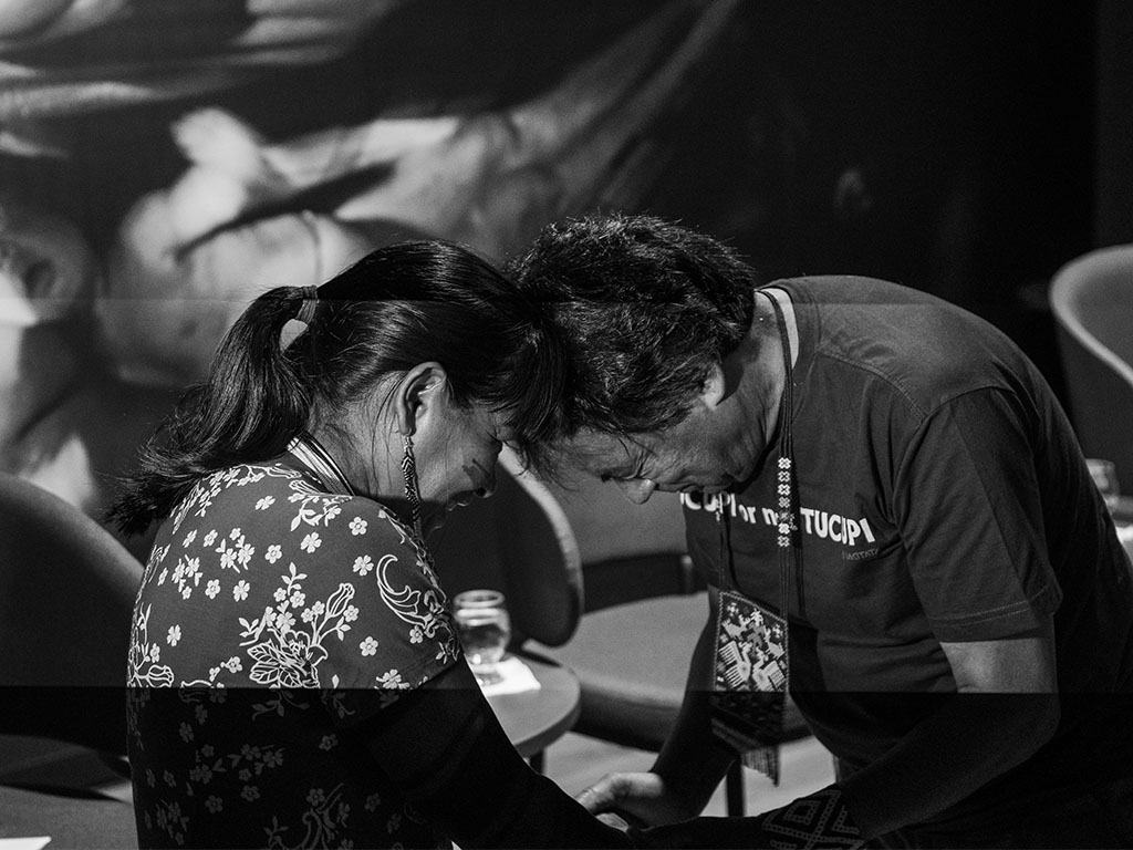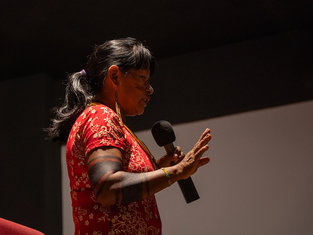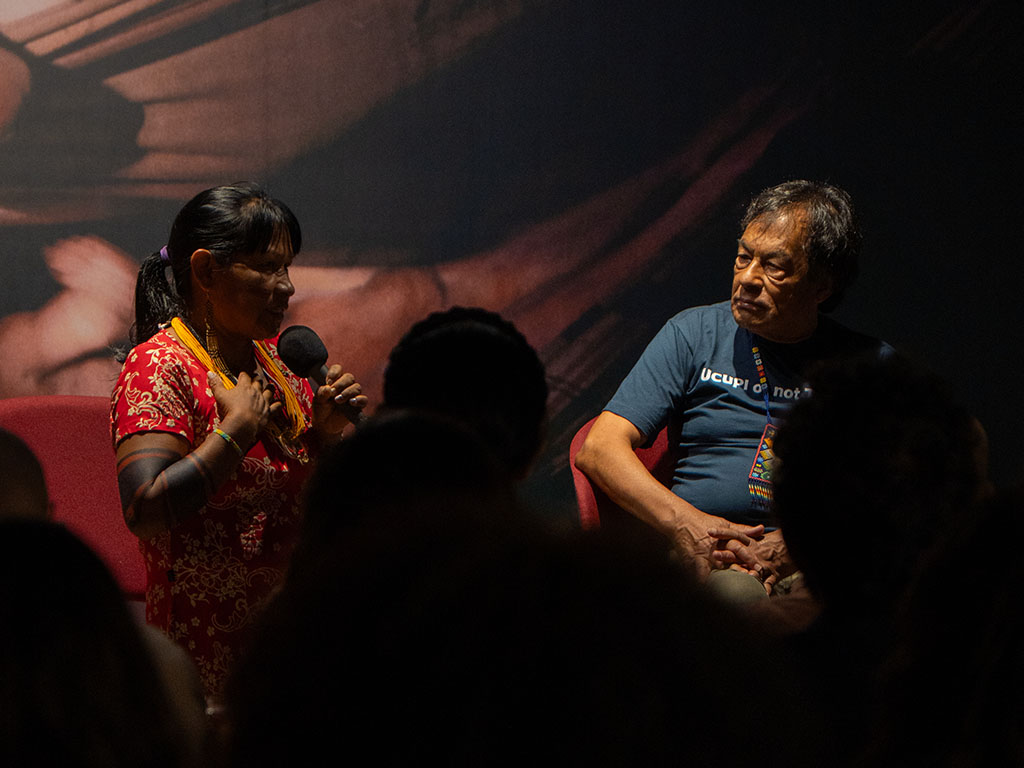 À noite do mesmo dia, a Galeria 1 voltou a reunir o público para a mesa de debate “O encontro de Ailton Krenak e Hiromi Nagakura com os povos da floresta e do cerrado”. A conversa reuniu lideranças indígenas que integram as comunidades fotografadas na exposição: Isa Tximá Huni Kuin, Maria Alexandrina da Silva Pinhanta (Sãtsi), Maria Salete Caapir Krikati e Marineusa Pryj Krikati .