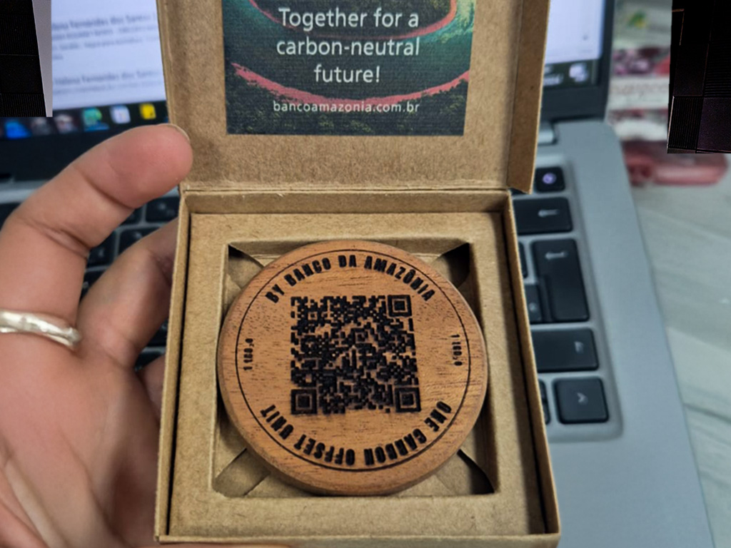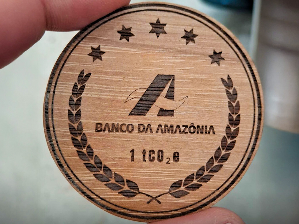Produzidas em madeira amazônica (matamatá e pau-rainha), as moedas começaram a ser distribuídas na COP 29, que foi realizada em Baku, no Azerbaijão, em 2024. Cada peça representa a compensação de uma tonelada de carbono adquirida a partir do Projeto Aruanã. Agora, o Banco da Amazônia atingiu a marca de 350 toneladas de CO2 compensadas
