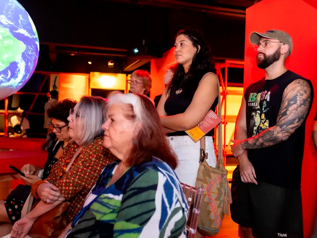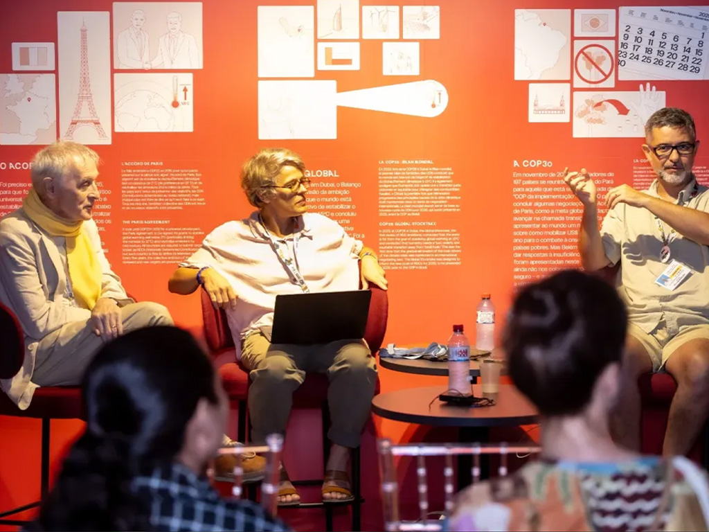 O debate contou com a presença do físico Paulo Artaxo, um dos principais especialistas brasileiros em mudanças climáticas e integrante do Painel Intergovernamental sobre Mudanças Climáticas da ONU (IPCC); o jornalista Claudio Angelo, coordenador de políticas internacionais do Observatório do Clima e roteirista da exposição; e o climatólogo francês Jean Jouzel, referência mundial em estudos sobre paleoclima e ex-vice-presidente do Grupo de Trabalho Científico do IPCC. A mediação foi da francesa Nadège Mézié, assessora internacional do Centro Franco-Brasileiro da Biodiversidade Amazônica (CFBBA), que atua na promoção da cooperação científica entre Brasil e França.