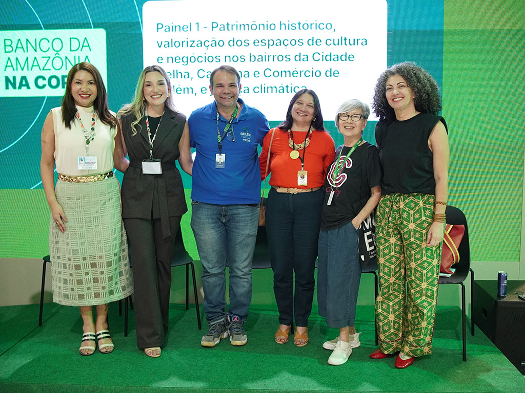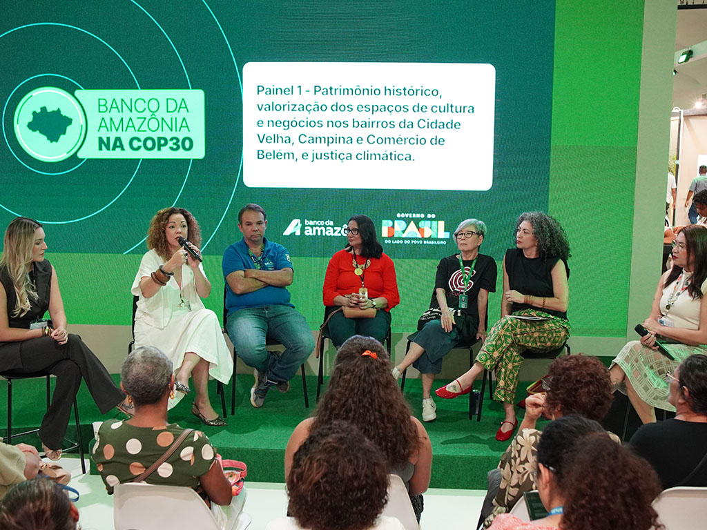 O primeiro painel teve como tema Patrimônio histórico, valorização dos espaços de cultura e negócios nos bairros da Cidade Velha, Campina e Comércio de Belém e justiça climática, e discutiu como essas intervenções dialogam com as teses defendidas pelo Banco da Amazônia ao longo da COP 30.