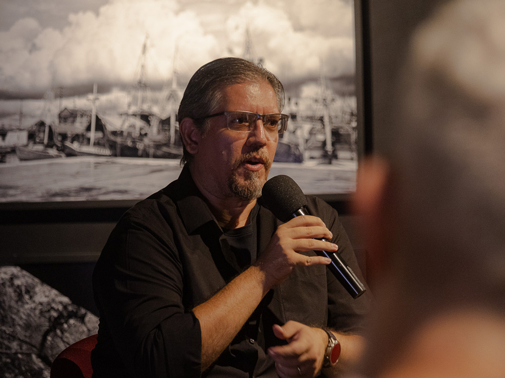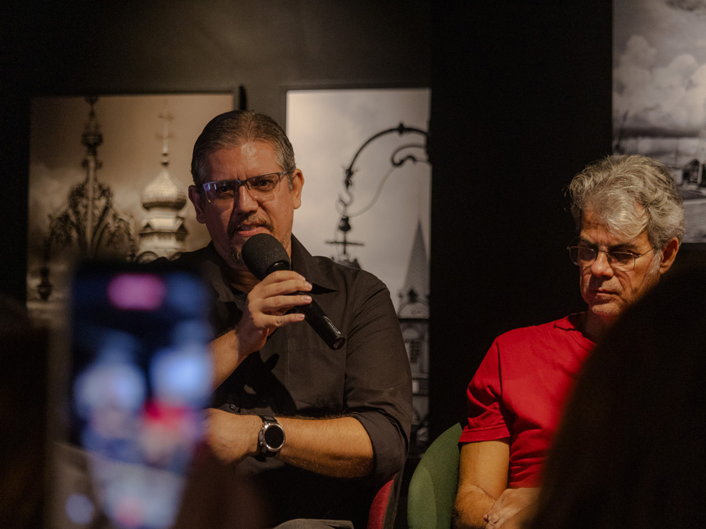 O curador da exposição e mediador da mesa, Emanuel Franco, trouxe uma perspectiva fascinante sobre os bastidores. Ao planejar a mostra em comemoração ao aniversário de Belém, ele se deparou com um oceano de memórias visuais: