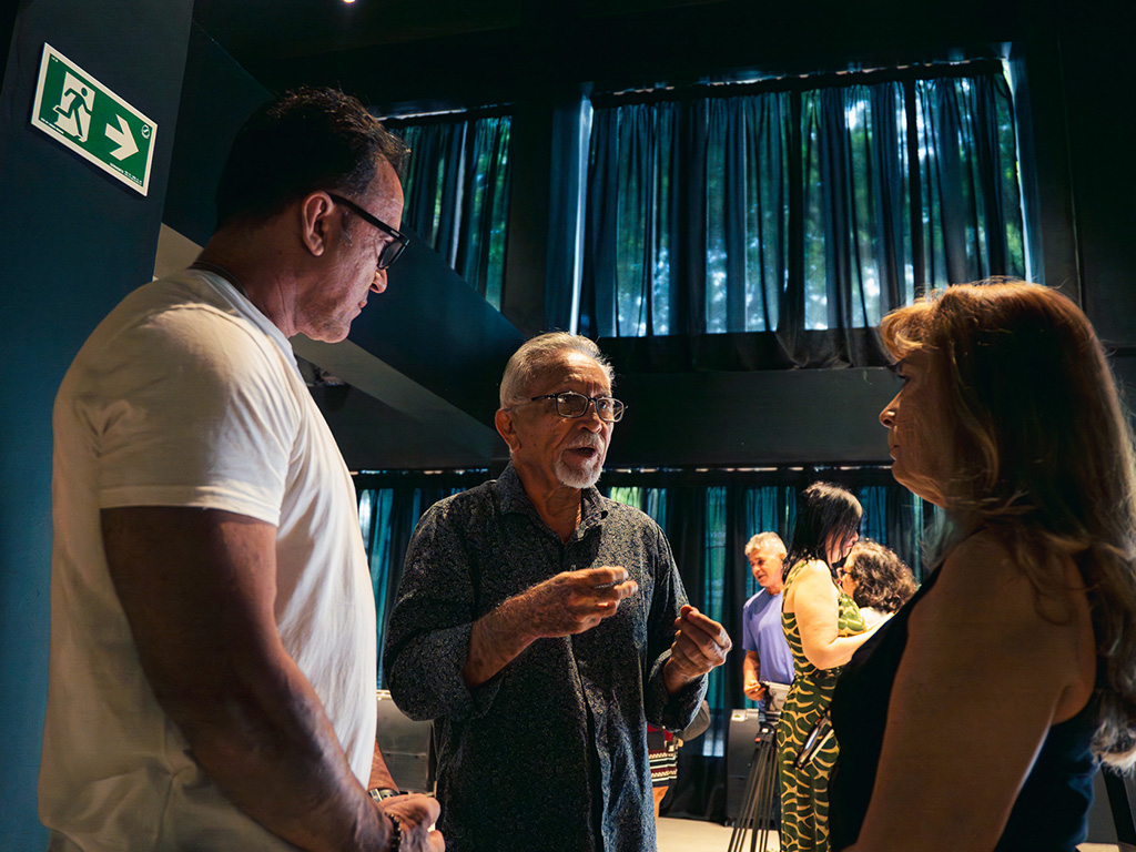 Antes das falas institucionais, os convidados da imprensa puderam circular livremente pelo espaço, observando as 35 fotografias que compõem a exposição e realizando registros em foto e vídeo. O momento favoreceu uma aproximação direta com o conceito curatorial e com os artistas envolvidos no projeto.