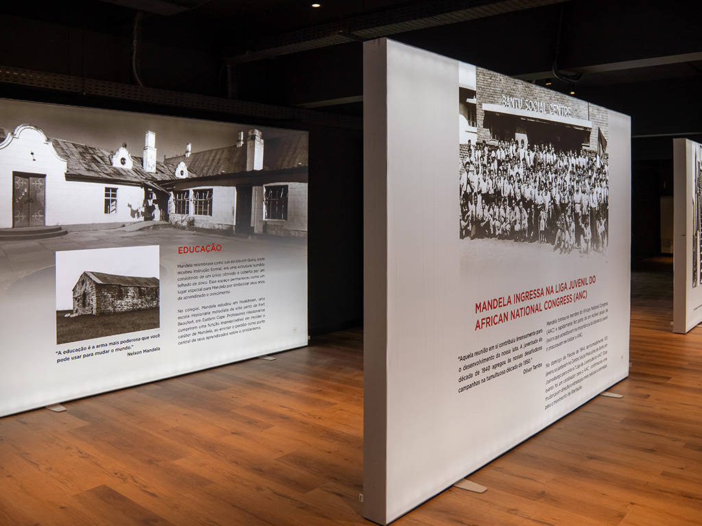 Com 50 painéis de fotos e vídeos, a exposição conta a jornada de Nelson Mandela, desde a sua infância e a luta contra o apartheid até se tornar o primeiro presidente negro da África do Sul.