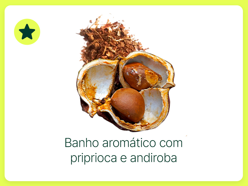 Fragrâncias como a priprioca, com seu cheiro terroso e marcante, e a andiroba, conhecida por suas propriedades relaxantes e terapêuticas, formam uma combinação perfeita para quem busca um momento de autocuidado.