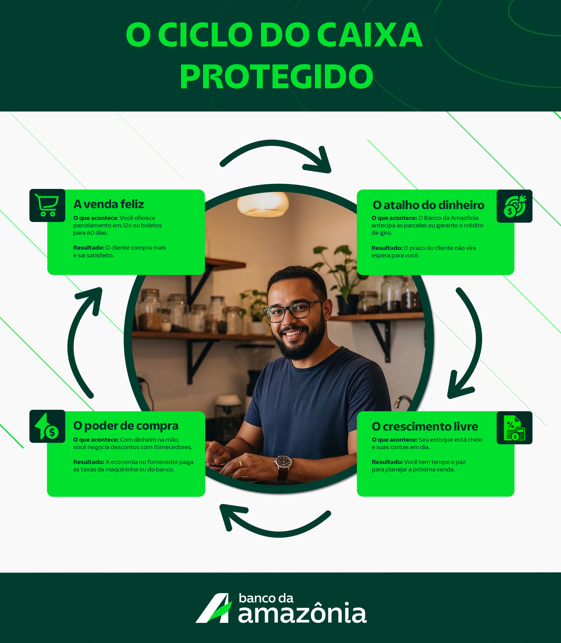 Oferecer prazo não precisa ser um sacrifício para o dono do negócio. Quando você utiliza as ferramentas certas do Banco da Amazônia, você separa a necessidade do cliente de pagar aos poucos da sua necessidade de receber rápido.