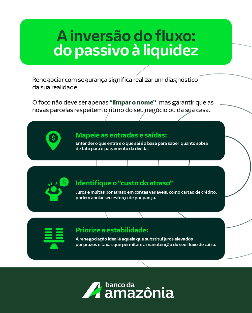 O planejamento financeiro não precisa ser perfeito, ele precisa ser funcional dentro da sua realidade. No Banco da Amazônia, nosso compromisso é oferecer o suporte necessário para que você recupere sua saúde financeira e volte a investir com foco em segurança, organização e desenvolvimento sustentável.