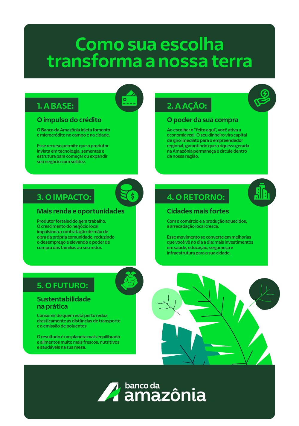 No Banco da Amazônia, entendemos que o ato de consumir é, na verdade, um ato político e econômico de grande escala. Escolher o produtor regional não é apenas uma gentileza com o vizinho; é a estratégia mais sólida para garantir que a região onde você vive, trabalha e cria sua família prospere de forma sustentável.