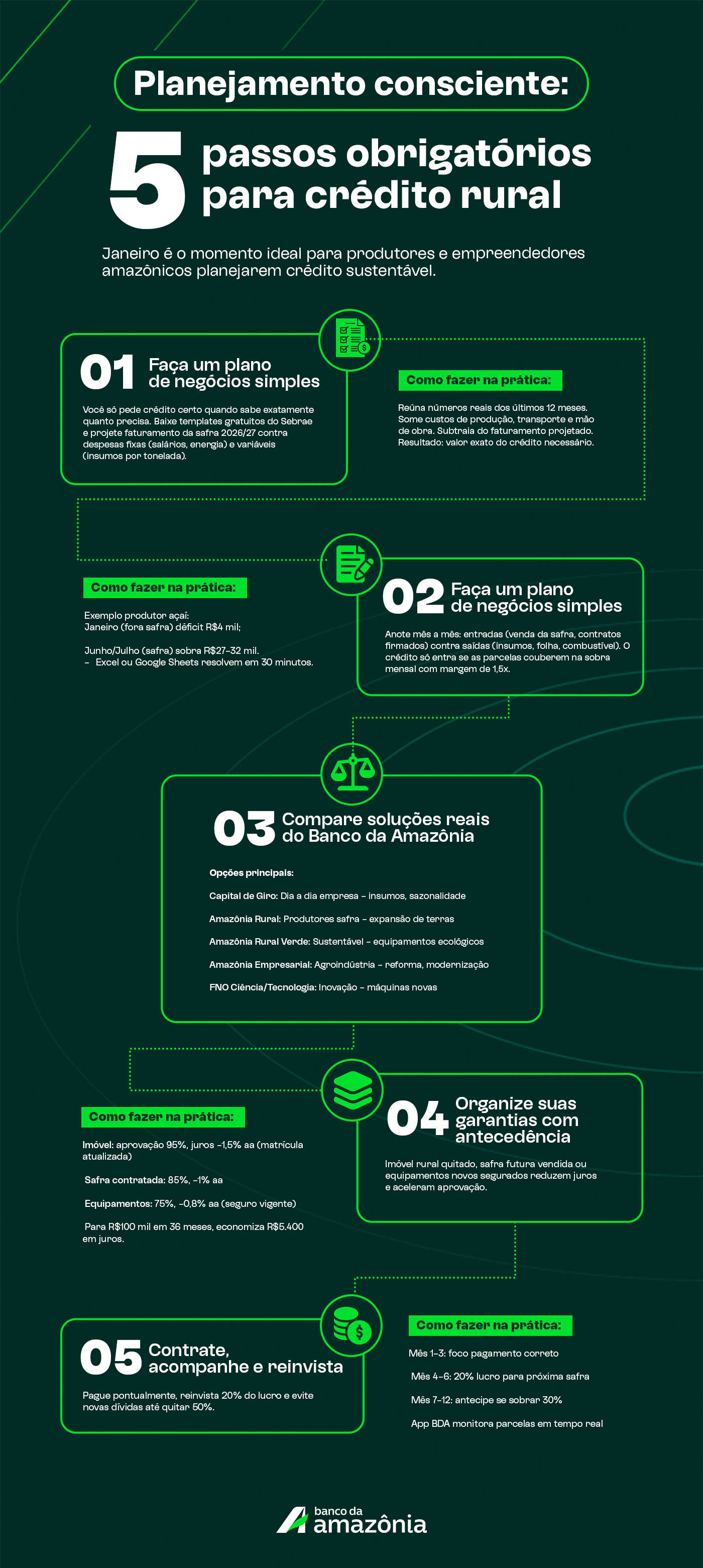 Este guia orienta situações reais onde crédito faz sentido, com foco em uso consciente e linhas específicas do Banco da Amazônia.