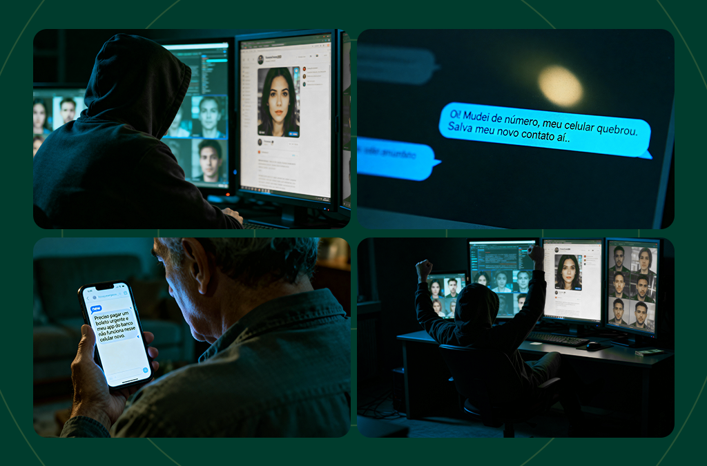 - O pedido: horas ou até um dia depois, quando você já salvou o “novo” número, ele volta a chamar, inventa uma emergência (“Preciso pagar um boleto urgente e meu app do banco não funciona nesse celular novo”) e pede uma transferência via Pix.